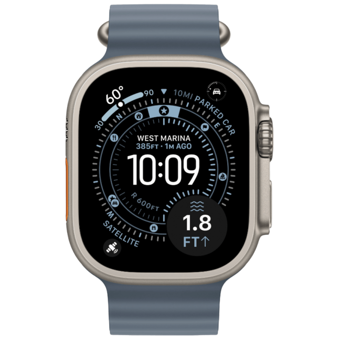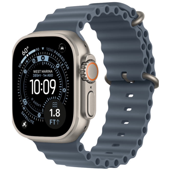 Apple Watch Ultra 3, 49 мм, Natural Titanium, ремешок Ocean цвета «якорный синий»